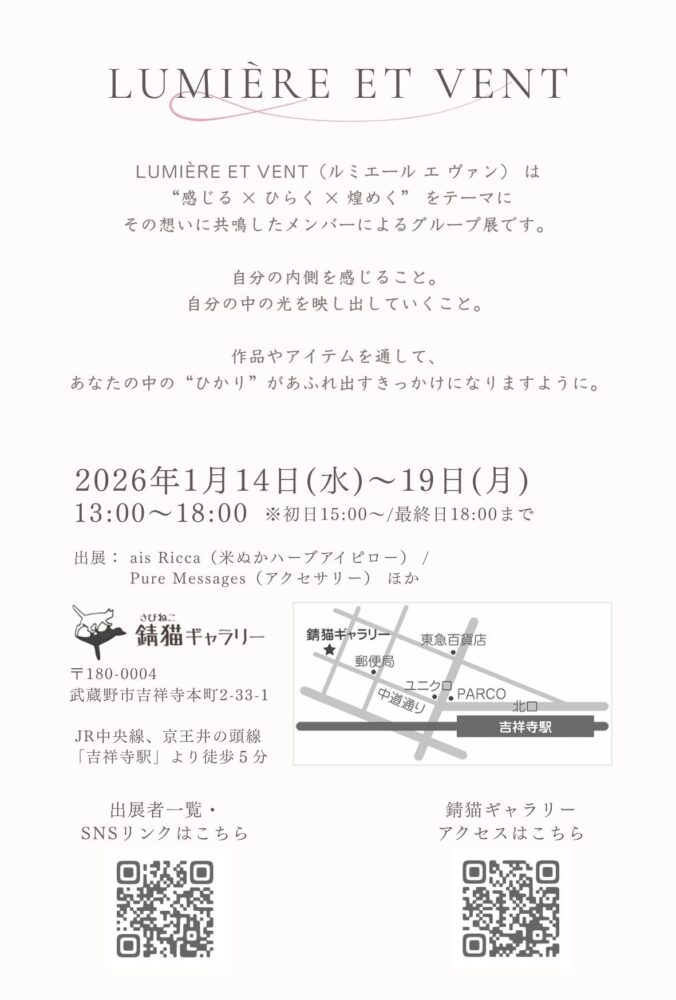 2025年1月14日(水)~19日(月) 貸出展示 「Lumière et Vent」(ルミエール エ ヴァン)