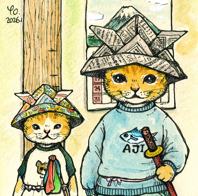 緑-6 原画「お兄ちゃんと一緒」端午の節句 売約済