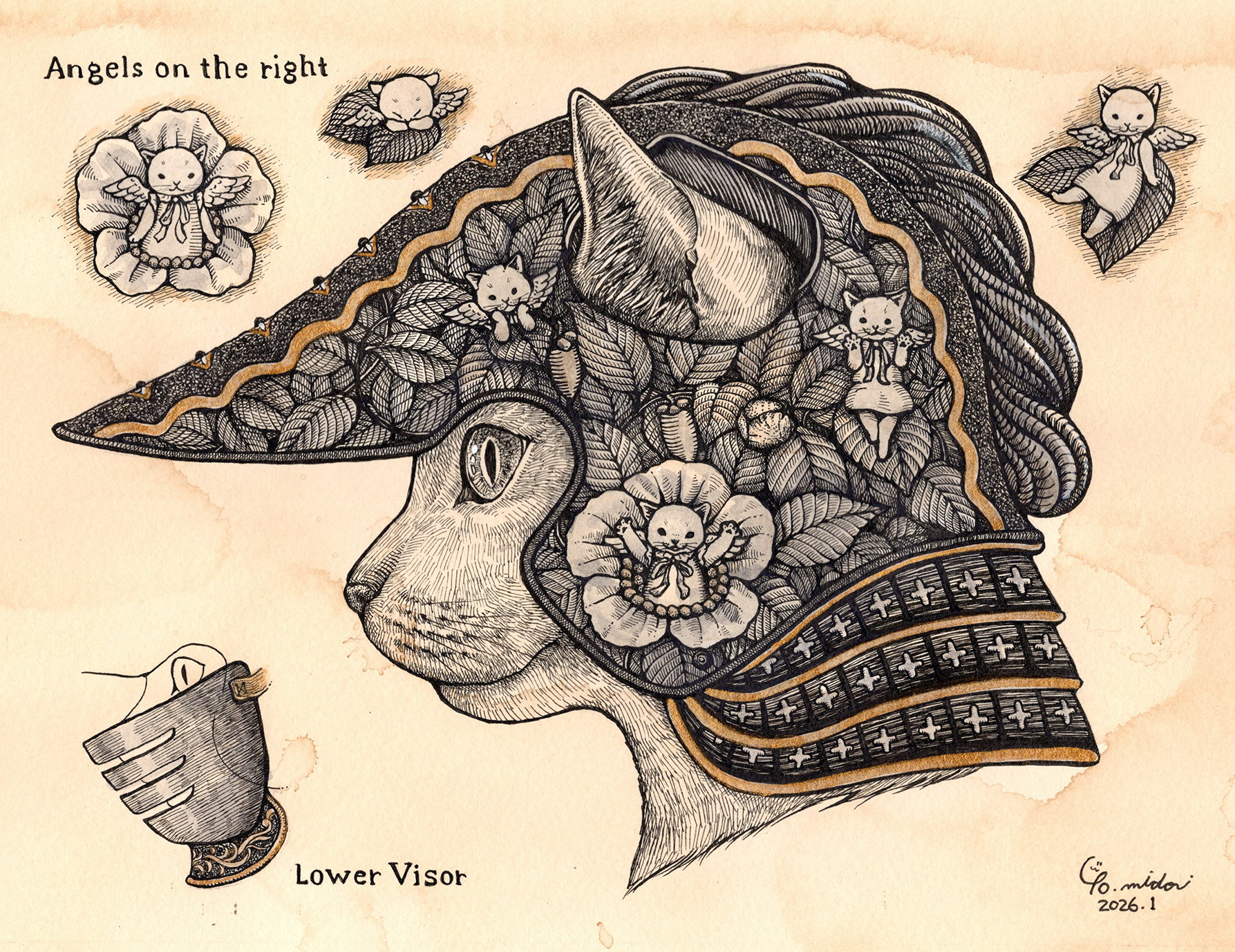 意匠はマタタビ草の中に右に3人、左に3人の天使がそれぞれ遊んでいる。